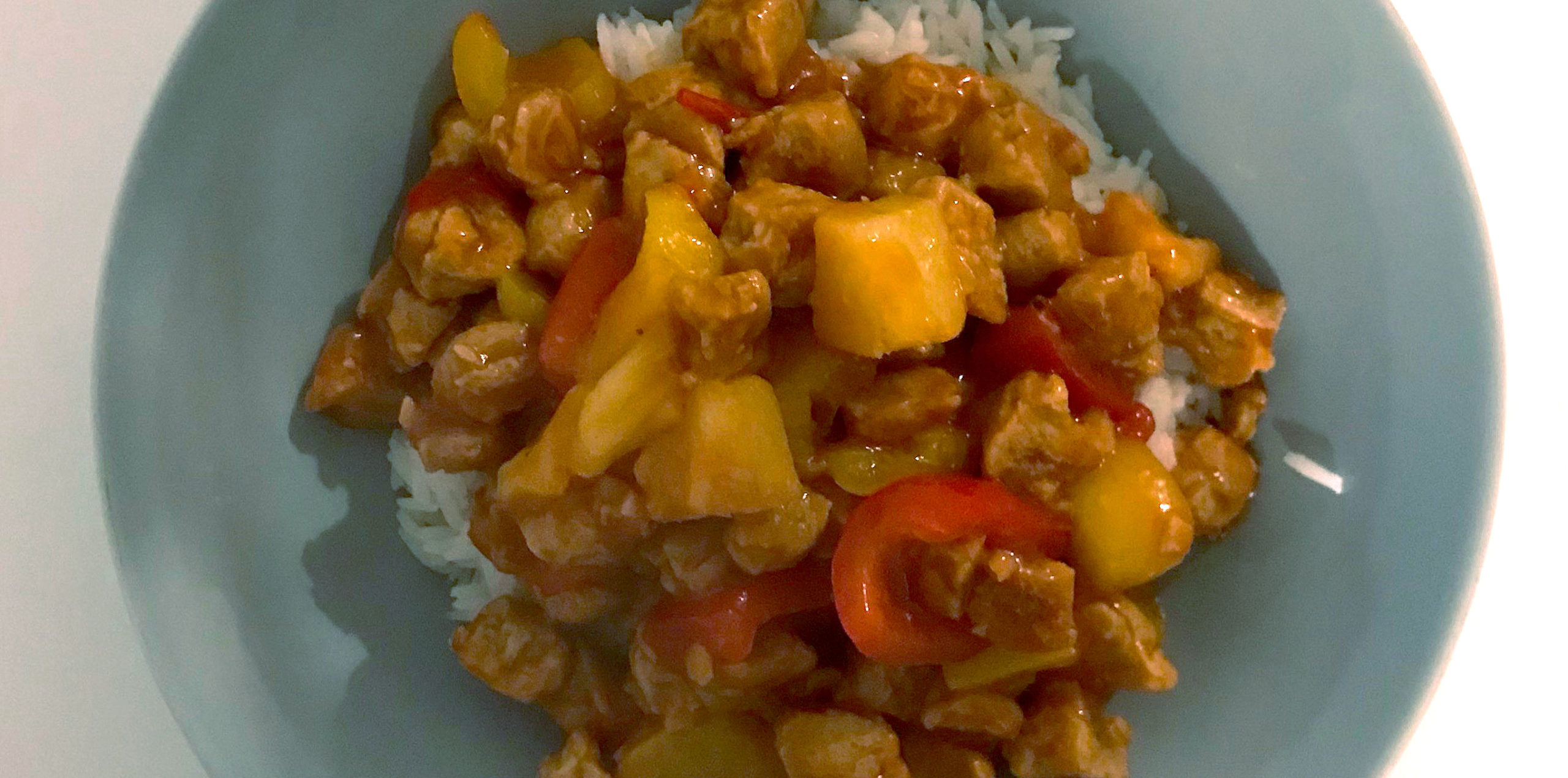 Paprikaa ja soijasuikaleita hapanimeläkastikkeessa